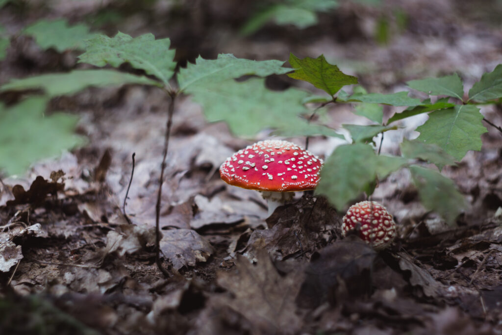 • Baum und Pilz: In beiden Traditionen wuchs der Fliegenpilz unter Bäumen – besonders unter Birken und Fichten. Diese Verbindung wurde als heilig angesehen: Der Pilz galt als „Kind des Baumes“.